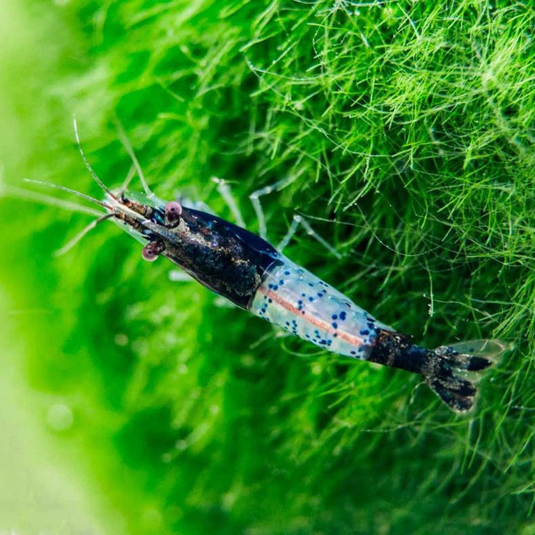 The Carbon Rili Shrimp is a striking freshwater dwarf shrimp variety known for its deep black and translucent blue patterning. This eye-catching Neocaridina variant is both hardy and peaceful, making it ideal for planted and nano aquariums. Active and easy to breed, it also contributes to tank cleanliness by grazing on biofilm and detritus.