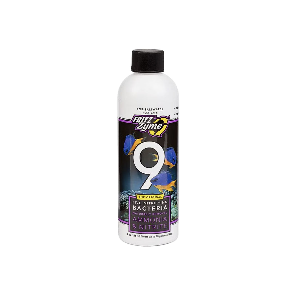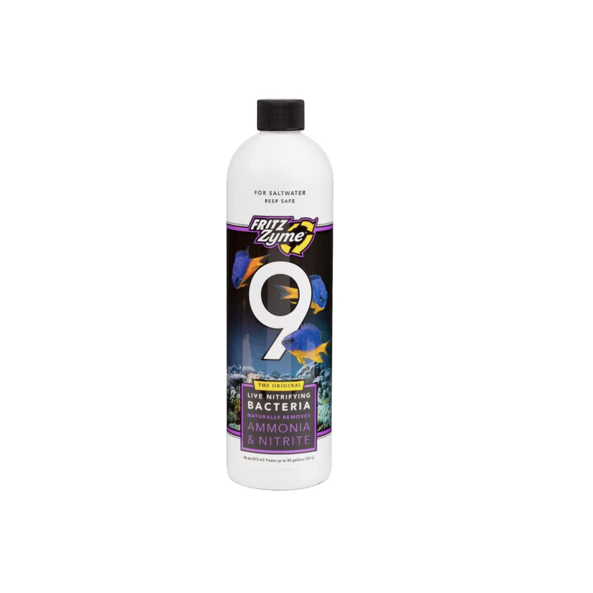 FritzZyme® 9 contains live saltwater-specific strains of live nitrifying bacteria proven to reduce fish loss due to toxic levels of ammonia and nitrite. Nitrifying bacteria can take weeks to naturally establish colonies in new aquariums while ammonia and nitrite can reach lethal levels in only a few days. FritzZyme® 9 provides the proper balance of bacteria proven to rapidly seed biofilters, greatly reducing the natural cycle time allowing for safe, faster addition of livestock.
