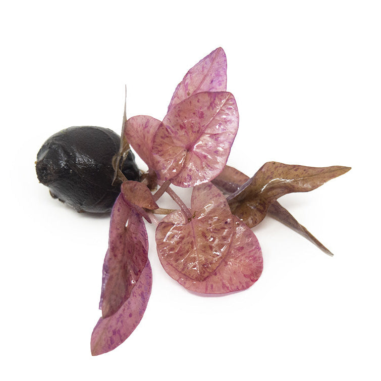 The Tiger Lotus (Nymphaea zenkeri) is a striking bulb plant known for its large, vibrant leaves that range from bright green to deep red, often beautifully mottled with darker patterns. Its bold, heart-shaped foliage creates a dramatic focal point in aquascapes, adding rich color and a natural, tropical look. The plant can produce both submerged and floating leaves, bringing dynamic height and texture to the aquarium.